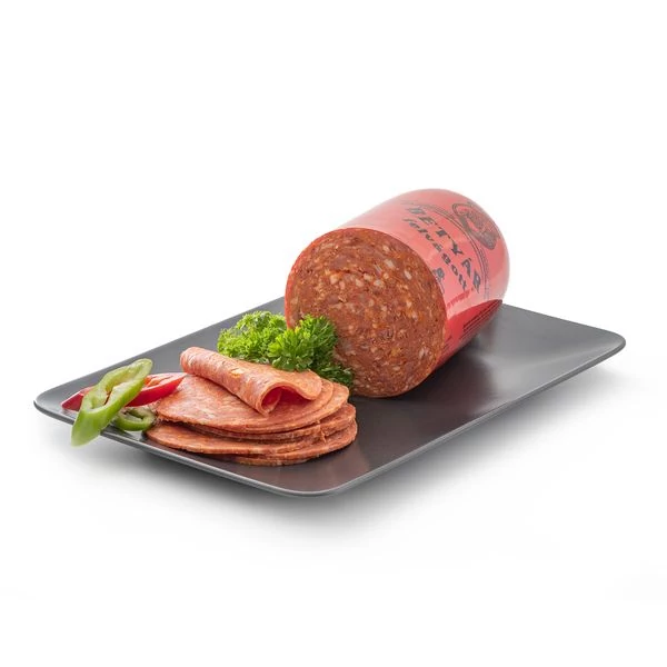 Összetevők: sertéshús 60%, sertésszalonna, ivóvíz, pácsó (étkezési só, tartósítószer E250), burgonyakeményítő, fűszerkeverék (fűszerkeverék, stabilizátorok E451, dextróz, fűszerkivonatok, szárított zöldség, antioxidáns E316, savanyúságot szabályozó anyag E575.