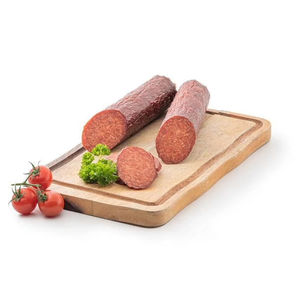 Összetevők: sertéshús 61%, sertésszalonna, sertésbőr, ivóvíz, pácsó (étkezési só, tartósítószer), cukor, keményítőszirup, dextróz, édepaprika-őrlemény, glükózszirup, ízfokozók E621, E635, antioxidáns E316, szárított zöldségek (fokhagyma), fűszerkivonatok, színezék E120, starterkultúra.
