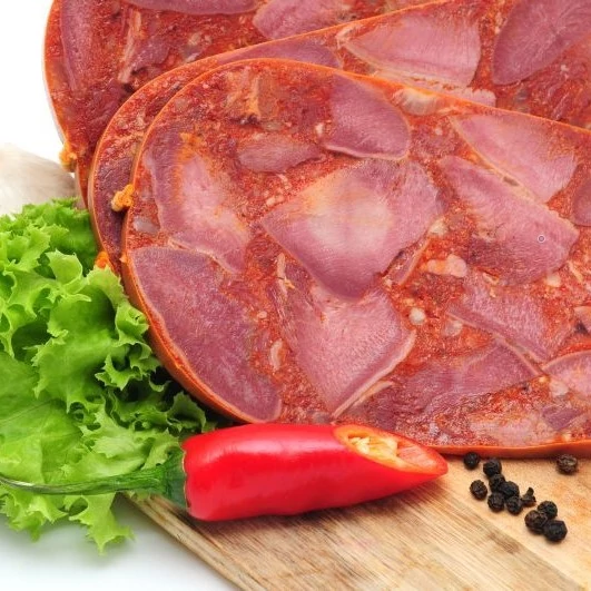 Sertés nyelv (30%), Sertés szív, Sertéshús, Szalonna, Sertés bőrke, Víz, Burgonyakeményítő, Étkezési só, Stabilizátor E451, Glükóz szirup, E575, Fűszerkivonatok, Színezék E120, Tartósítószer E250.