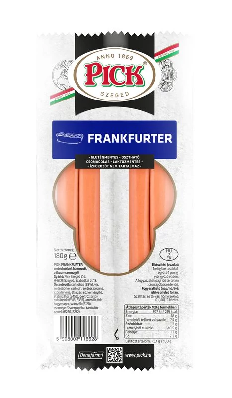 Sertéshús (68%), víz, sertésbőrke, sertésín, sertésszalonna, szójafehérje, étkezési só, keményítő, stabilizátor (E450), dextróz, antioxidánsok (E316, E392), aromák, fokhagymapor, színezék (E120), csemege fűszerpaprika, tartósítószerek (E250, E262)