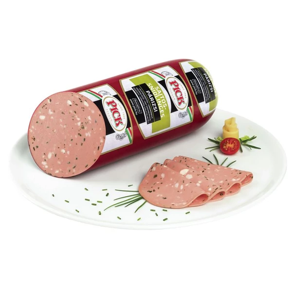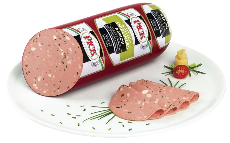Sertéshús felhasználásával készült, különleges fűszerezésű párizsi, melynek egyedi ízét a finomra aprított metélőhagyma és a lágy sajtdarabkák együttese biztosítja.